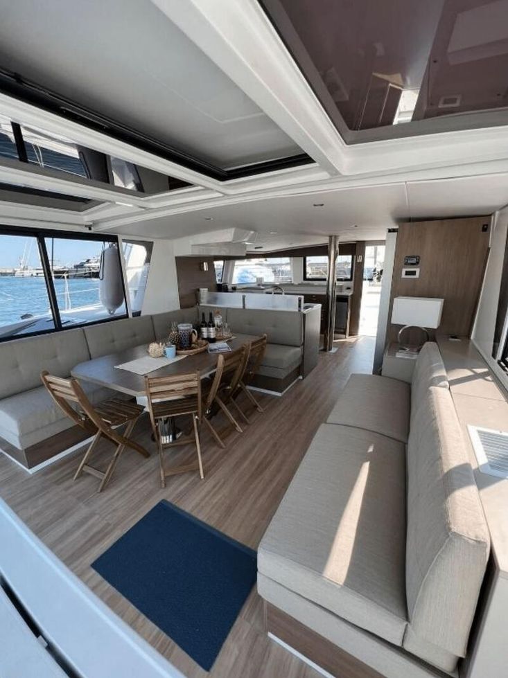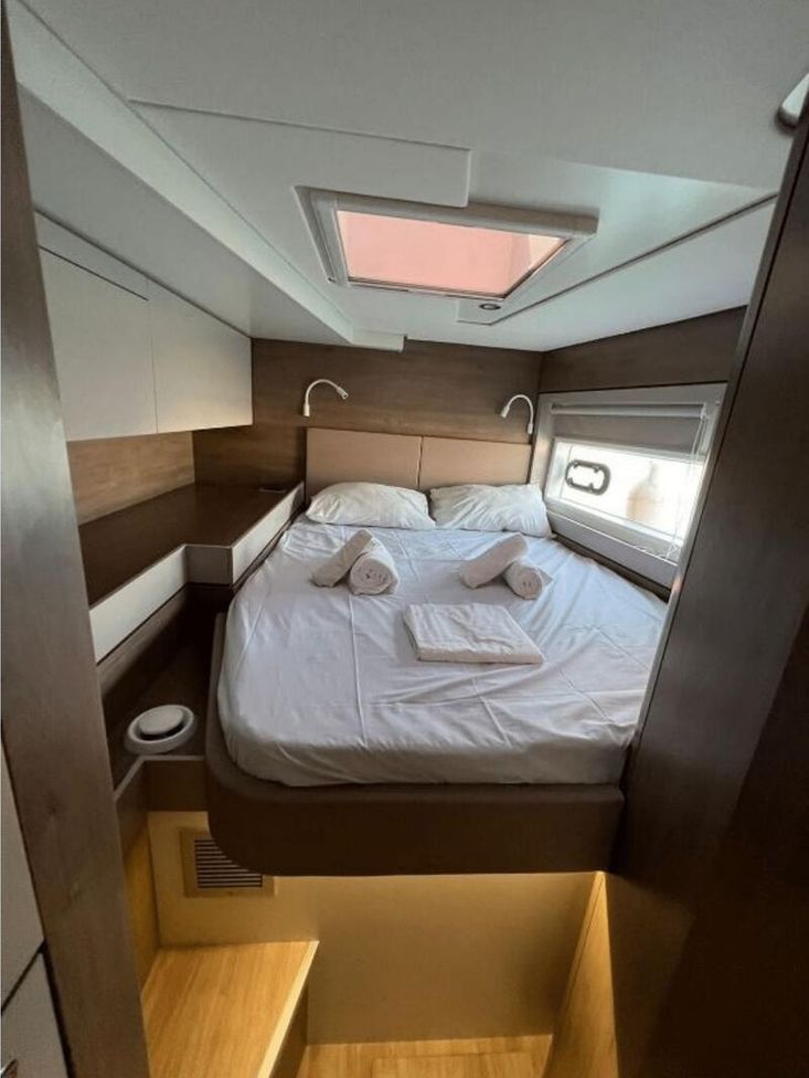 Flag: Greek. Type of Sails: Fully battened mainsail (2023), roller genoa (2023). Berths: 12. Cabins: 5 (2 starboard + 3 portside) + 2 bow Engine (hp)/ Hours: 2 x 57hp Yanmar, 1.650 hours (left engine) and 1.653 hours (right engine) (September 2025). Dinghy: PVC 3.10 m (2024 installed). Outboard: Honda 6hp.