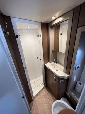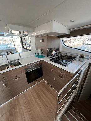 Sound System: Hifi Radio Fusion 6 HP bluetooth (salon, flybridge and front cockpit), TV pre-installation and TV antenna (FR), Inside and outside speakers, VHF