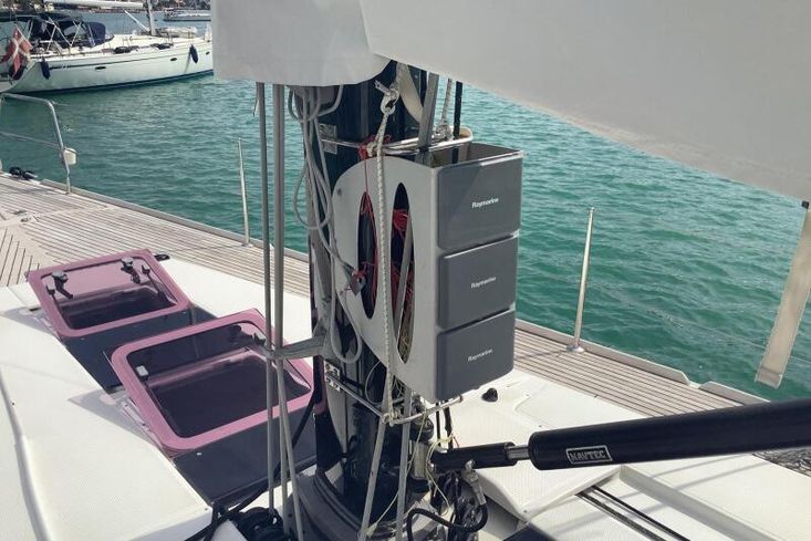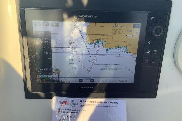 Major works carried out under the current ownership include rod standing and running rigging replacement in 2020, a Raymarine Axiom chartplotter installation in 2023, radar upgrade in 2020, wind instrument upgrade in 2025, skin fittings replacement in 2023, and comprehensive domestic battery replacement between 2020 and 2024. The engine was fully serviced in March 2025 alongside antifouling and anode renewal. A maintenance summary from Ionian Boat Assistance is available on request.