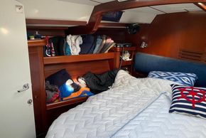 Below decks, the cherry wood interior is bright and welcoming with generous headroom, excellent storage and a layout designed for extended stays aboard. The large aft owner’s cabin, three heads compartments and flexible guest accommodation make her ideal for family cruising or hosting friends in comfort.