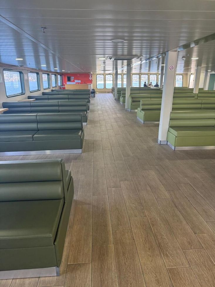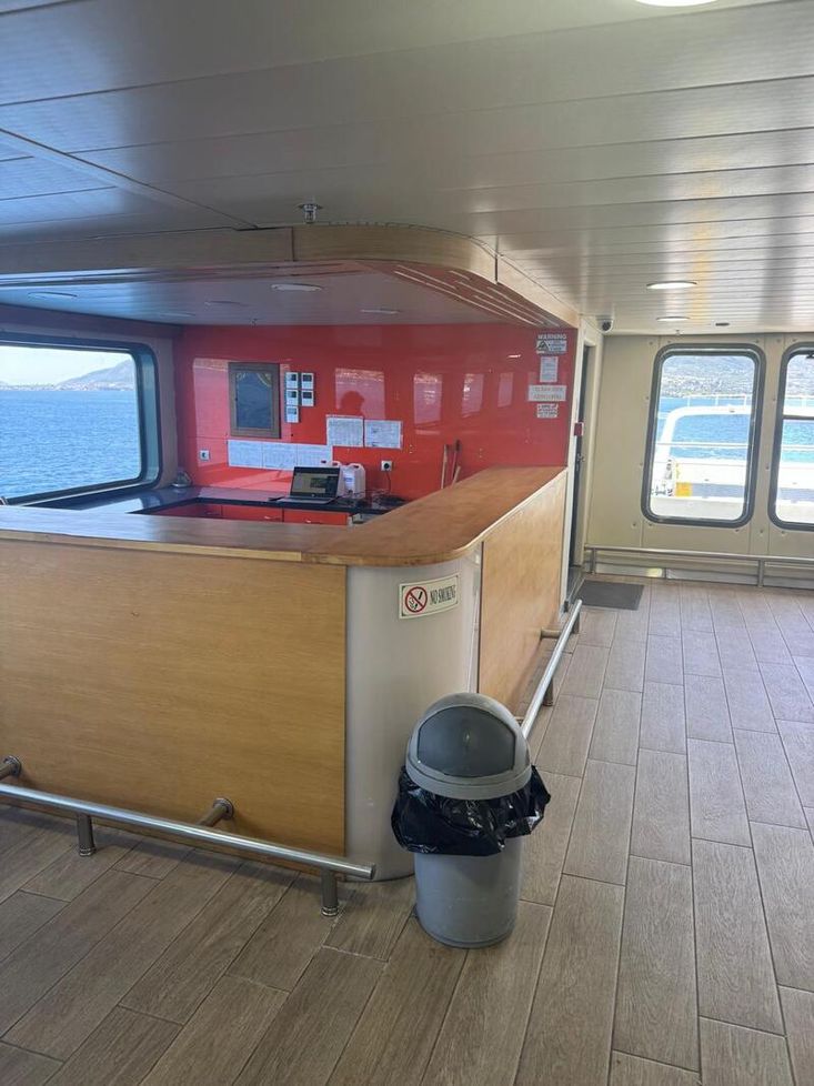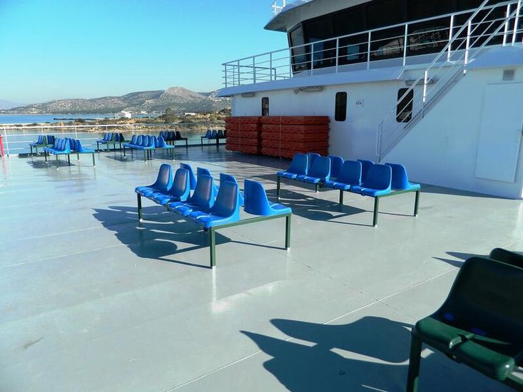BLT 2016, GREECE, DWT ABT 740, LOA 101.0M, BEAM 18.0M, DEPTH AT MAIN DECK 3.90M, LOADED DRAFT 2.65M, M/E 4 X CAT C18, 600BHP EACH AT 1800RPM, GENS 3, 4 X RUDDER PROPELLER SYSTEM VETH-400, SERVICE SPEED 11KN, PAX CAPACITY 500, CARS CAPACITY 190, 7 CABINS X 2 BERTHS EACH, LOCATION GREECE