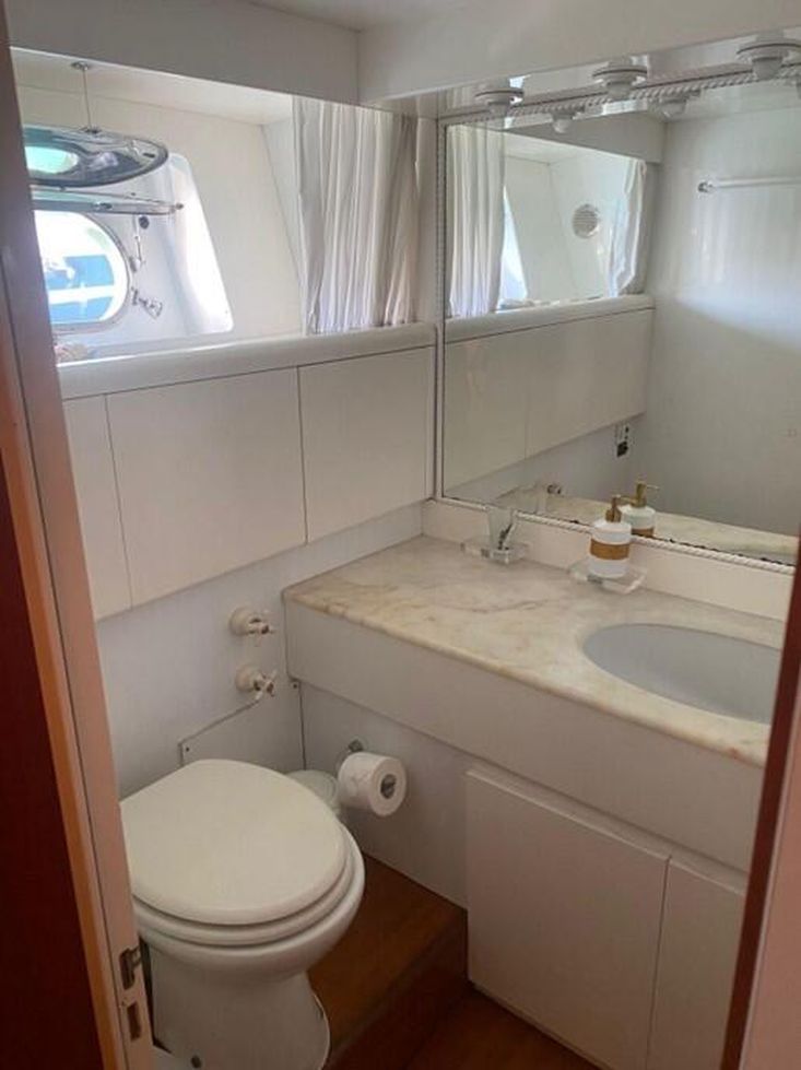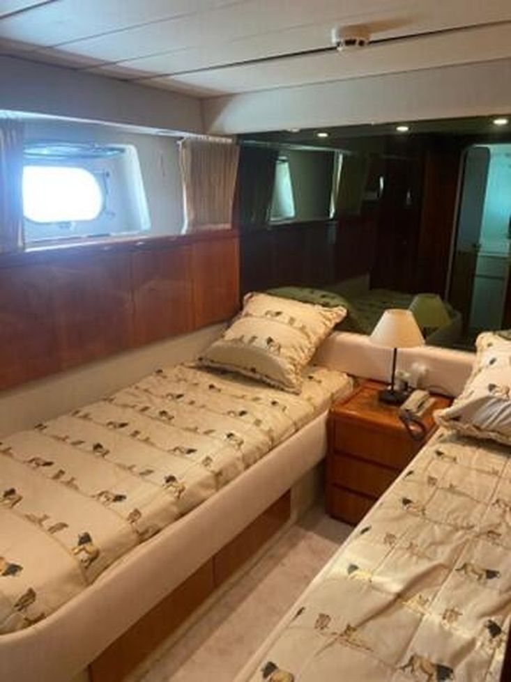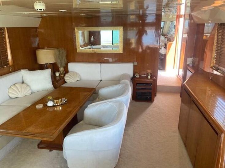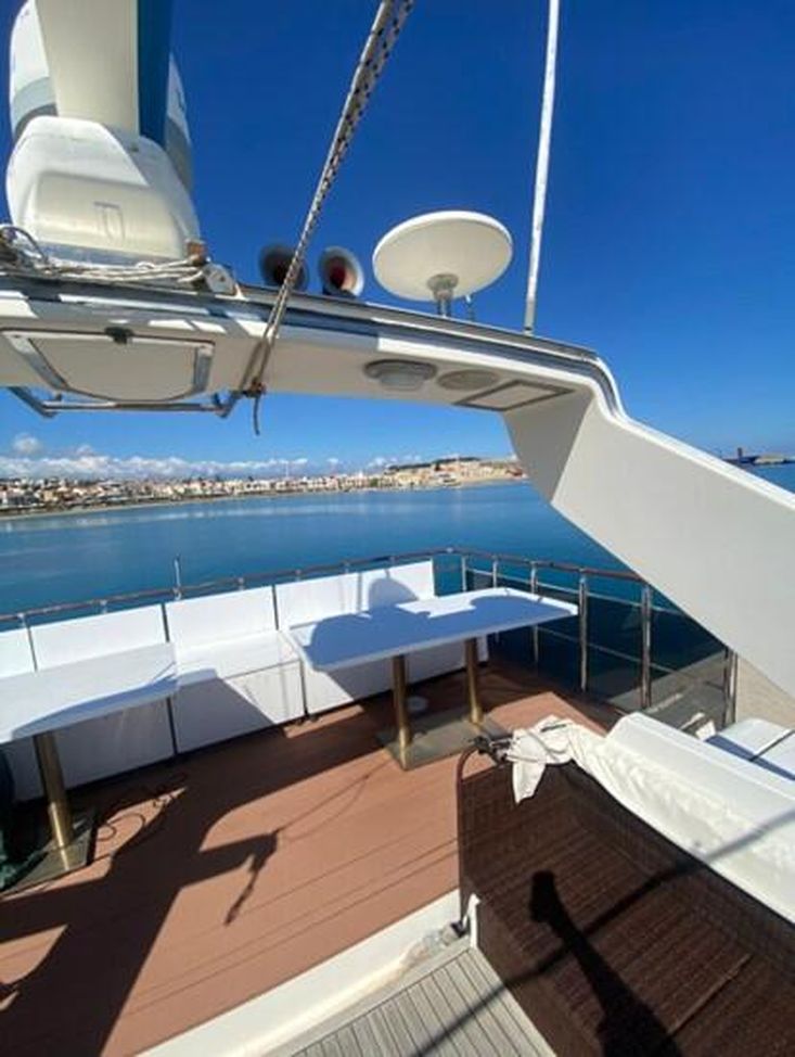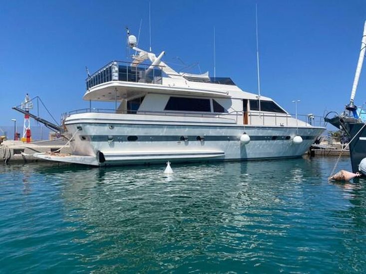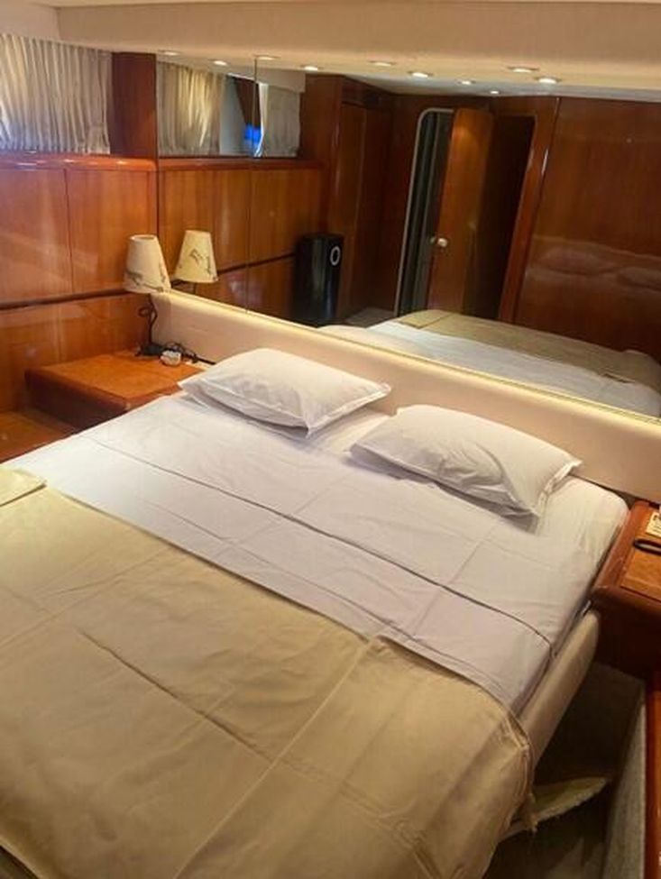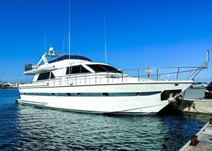 Flag: Greek. Hull/ Deck Material: GRP/ Teak. Berths: 10 + 2. Cabins: 4 + 1 (2 Master, 2 Triple, 1 Crew). Engine (hp)/ Hours: 2x Detroit Diesel 12VA 1.800 hp, 200 hours approx. since 2023 overhaul. Fuel Consumption: 150lt – 220lt. Max Speed: 22 knots. Cruising Speed: 15 knots.
