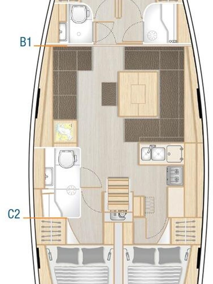 • Removable bulkhead between the 2 front cabins
