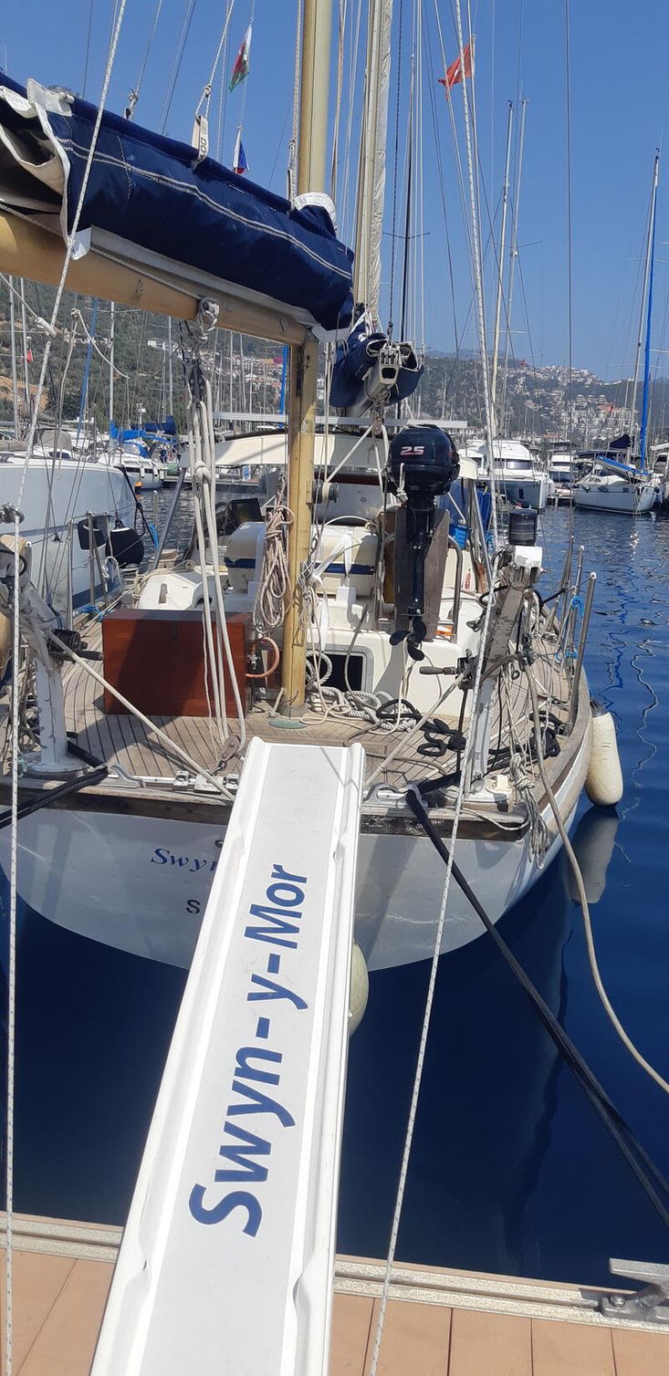 Extremely well built and robust construction. Continually improved and updated in 19 years of ownership. Provides a secure all weather sheltered cockpit with windscreen, side covers and hard canopy for long distance travel. Includes a full set of sails inc cruising chute storm sails. Nanni 50hp engine. 2x180ah domestic batteries + engine start. Life raft EPIRB AIS receiver Radar autohelm. separate aft cabin with heads. Forward heads holding tank (deck and underwater outlet) and shower. Table in saloon drops to provide a double berth. 25kg Rochna + 60 meters of chain regalvanised. Huge amount of stowage suitable to liveaboard. recent 4 stroke outboard Avon Dinghy . Davits GRP Passerelle . Lewmar 50 sheet winches new Gas box. Teak decks. Electric windlass
