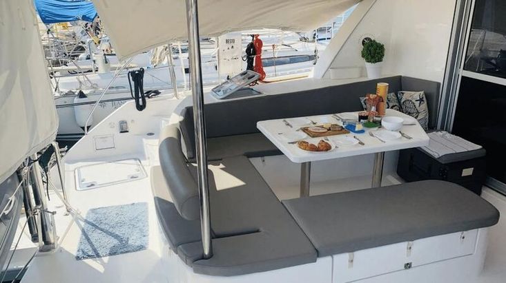 Flag: Greek. Type of Sails: Fully battened mainsail (2015), roller genoa (2015), both sails with very little use. Berths: 10. Cabins: 6: 4 double & 2 single (both accessible from inside). Watermaker: AQUA BASE 120 lt/hour. Engine (hp)/ Hours: 2 x Yanmar 39hp, 4800 hours (September 2024). Outboard: Honda 20hp & electric dinghy lift/ davits system.